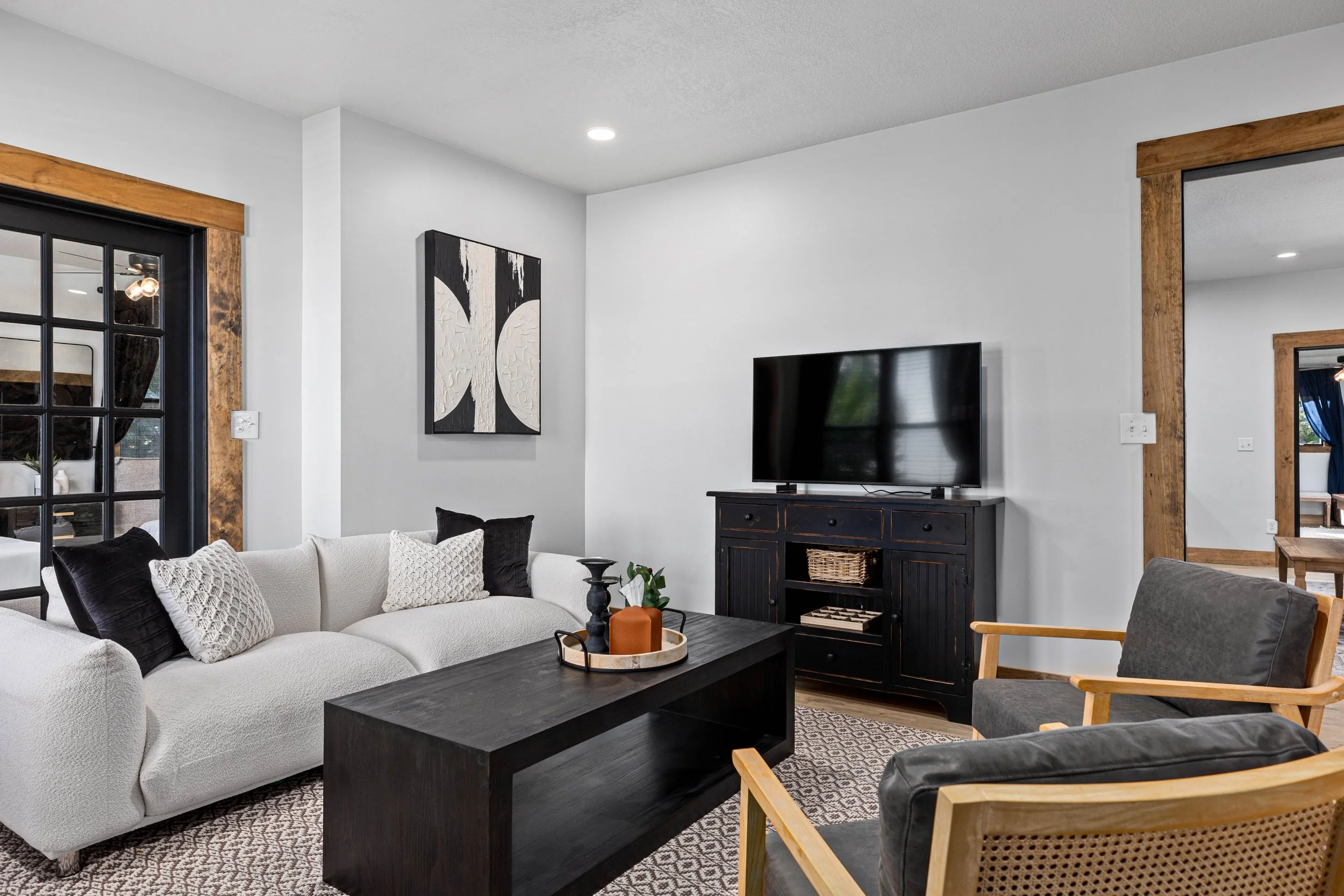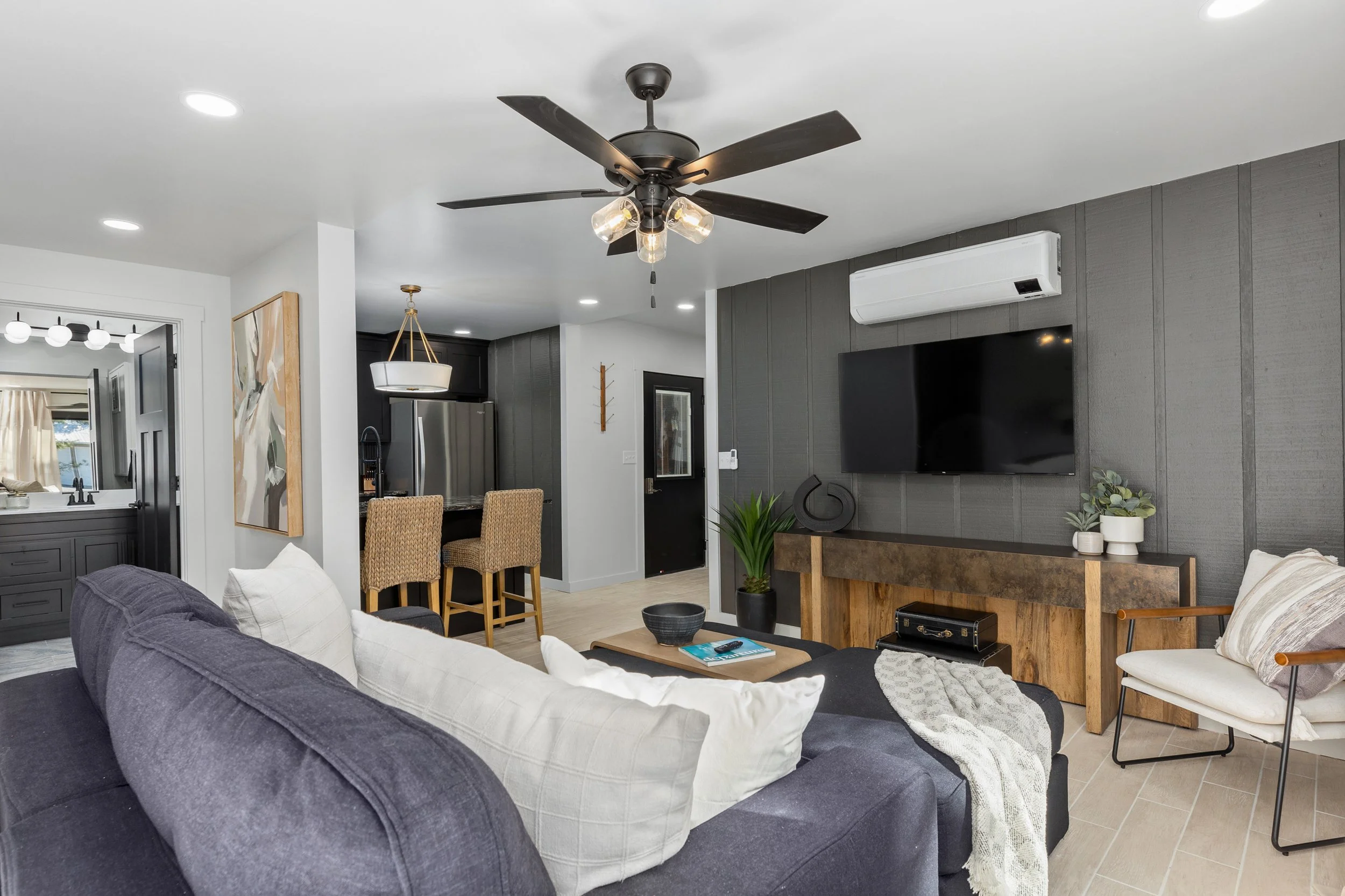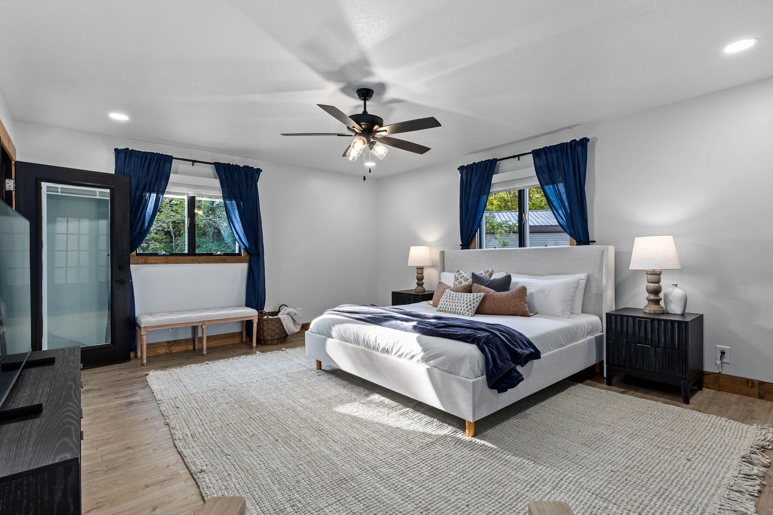 Inside you’ll find the comforts of home, free WiFi, a full kitchen with a keurig and coffee pot, room to spread out, a full size dining table, a pull out sofa in the living room, games galore, a king size master room , a bunk room , full laundry room, tub/shower combo, smart TVs and updates every direction you look all conveniently located on one level. Outside offers all the property amenities including a large fire pit and dock for fishing as well as your own grill and private deck with outdoor dining. boat parking available for guests with our big driveway!